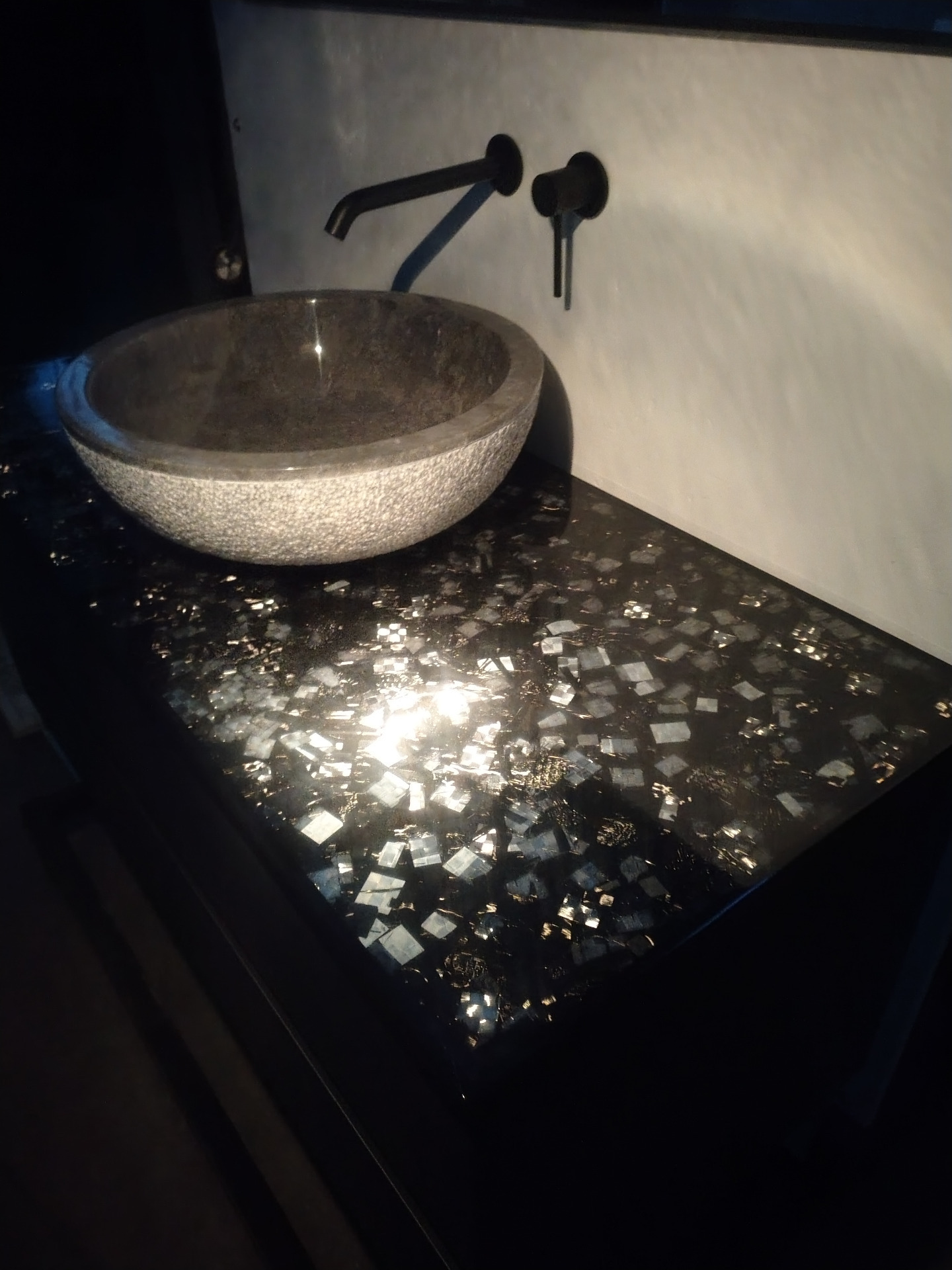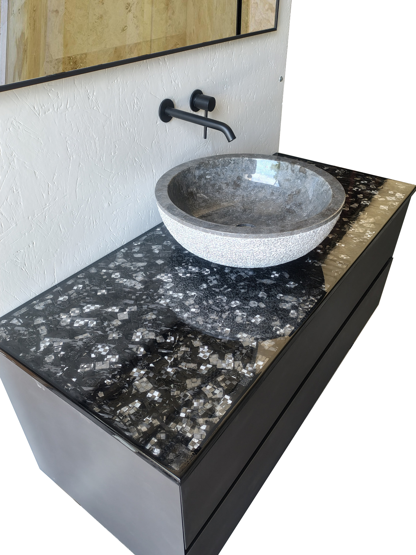 I nostri top per mobili da bagno sono realizzati in fibra di carbonio e resine cristalline ultramoderne e sopratutto rifiniti con vernice antigraffio.