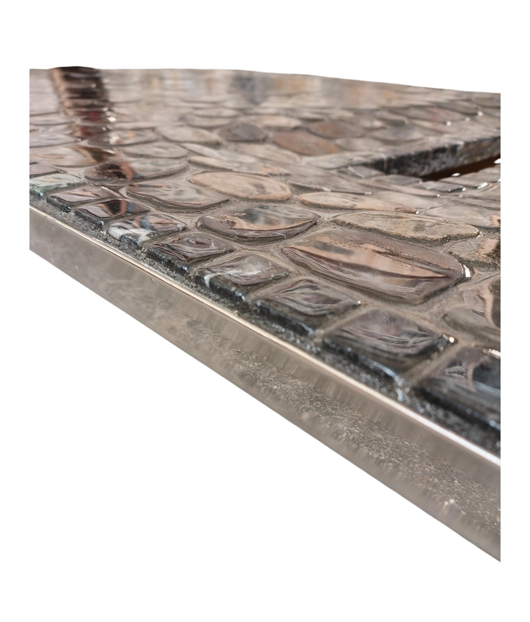 di due cm e rifinito sul bordo con un profilo di acciaio inossidabile,