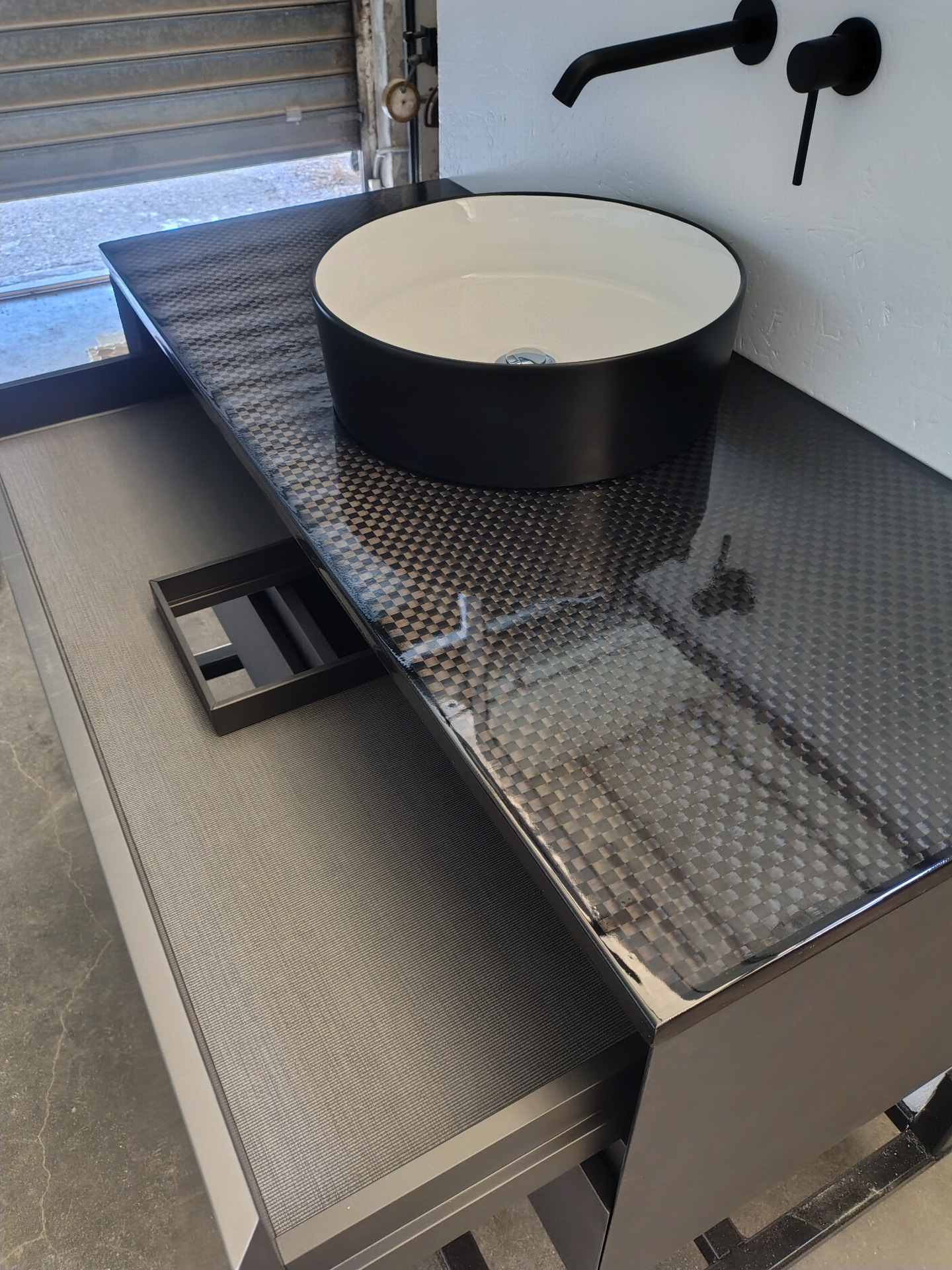 piano di appoggio e' realizzato in fibra di carbonio e